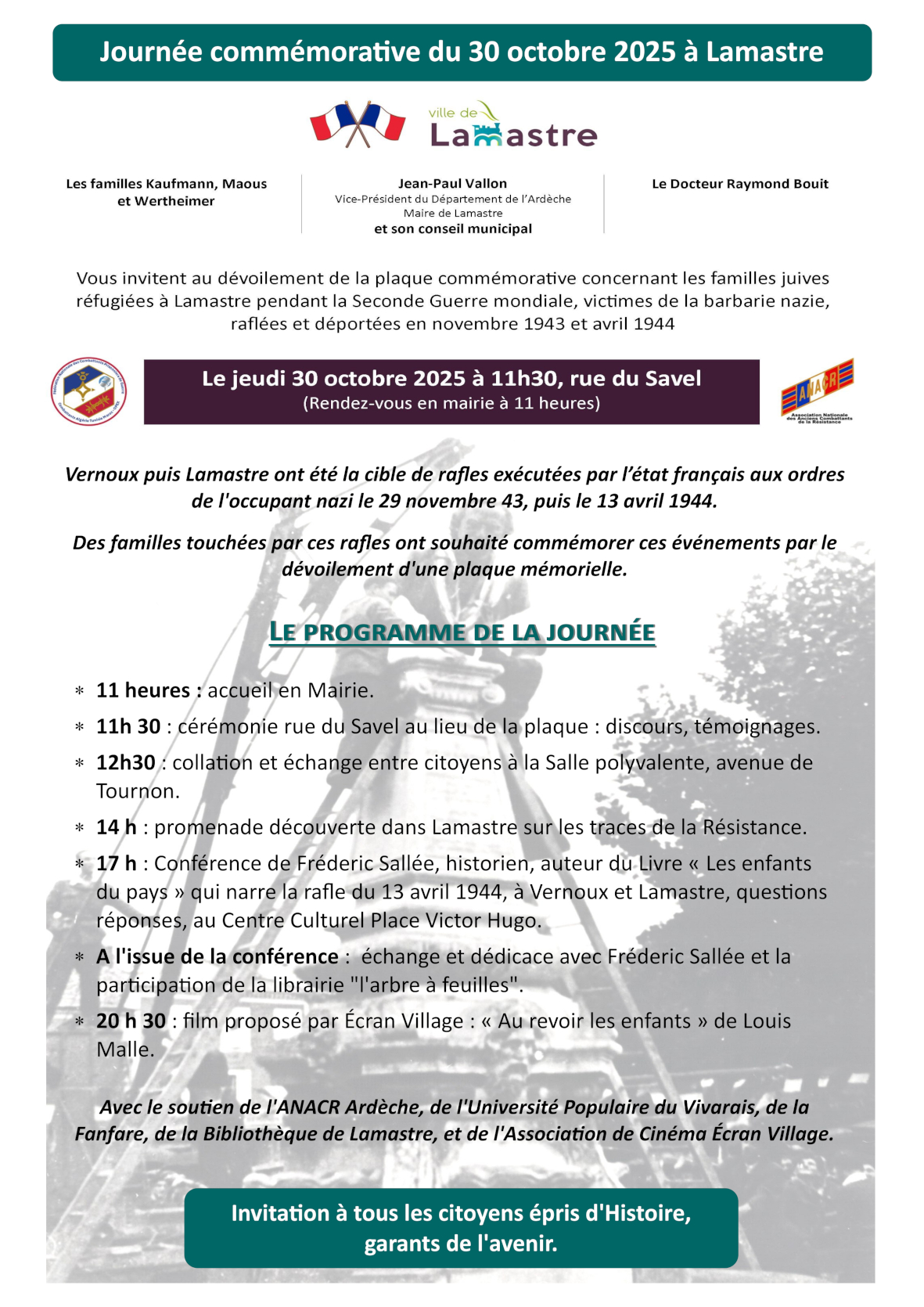 Journée commémorative du 30 octobre 2025 à Lamastre